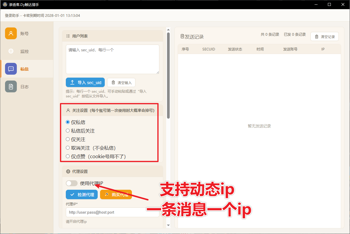 (每发送一条si信ip都不一样,多账号动态IP智能隔离)